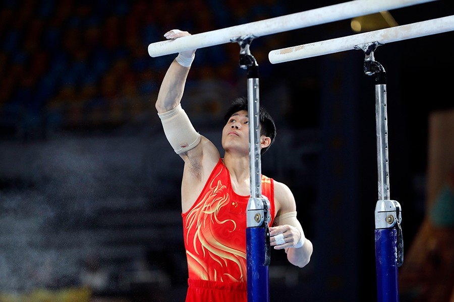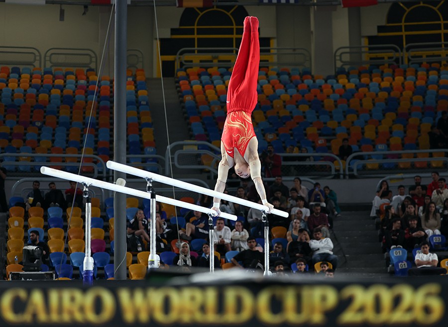 当地时候4月6日,2026年国际体联体操世界杯开罗站男人双杠决赛在埃和开罗进行。图/新华社
