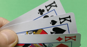 发完牌后,所有玩家亮出牌面,开始比牌。比牌规则根据牌型大小来决定胜负。通常,牌型大小依次为:三张相同数字的牌(如三个A)最大,其次是三公牌(即K、Q、J各一张),再次是普通牌。普通牌的大小则通过计算点数来决定,点数大者胜。如果点数相同,则比较最大的一张牌;如果最大张牌也相同,则比较花色(黑桃>红桃>梅花>方块)。
